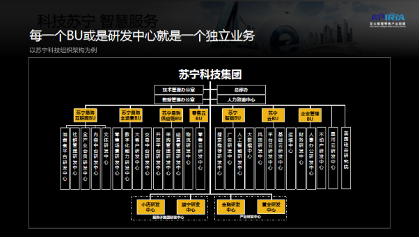 As we said earlier, China and Taiwan are more faced with organizational and human problems. Therefore, to be a middle and Taiwan should first consider setting up a corresponding organization according to the business process after the business process is solidified, and finally become a middle and Taiwan. , that is, import from the entire business model to people, then to the organization, and finally to the business state. In addition, the middle stage is not suitable for every stage of every company. In the period of independent business expansion and breakthrough, "it must be done with independent regiments, independent divisions, and independent brigade establishments", otherwise it will become a bottleneck; but at a certain stage of development, there are too many hills, and it is necessary to "shut down and transfer, It is necessary to merge similar items. Ask for efficiency in management, and cancel repetitive construction.” For example, Suning Technology’s organizational structure model: in Suning Technology’s organizational structure, each BU or R&D center is an independent business, and it is also an R&D center. , the entire business has a very high degree of overlap with the R&D department: