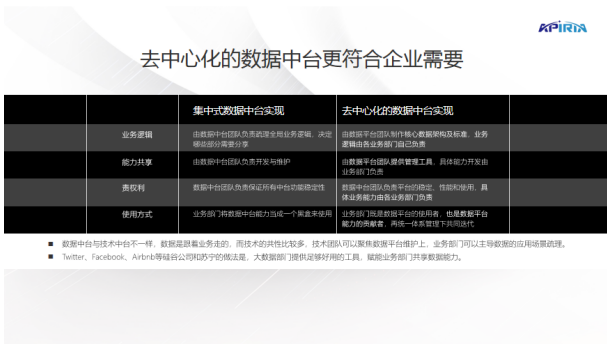 The practice of Silicon Valley companies such as Twitter, Facebook, and Airbnb is that the big data department provides enough useful tools to empower business departments to share data capabilities. The situation is different for some companies. They extract a certain capability and are responsible for it by a special group. In fact, this concept can be seen in many excellent leading Internet companies, such as Ali, JD.com, Suning, etc. in China.